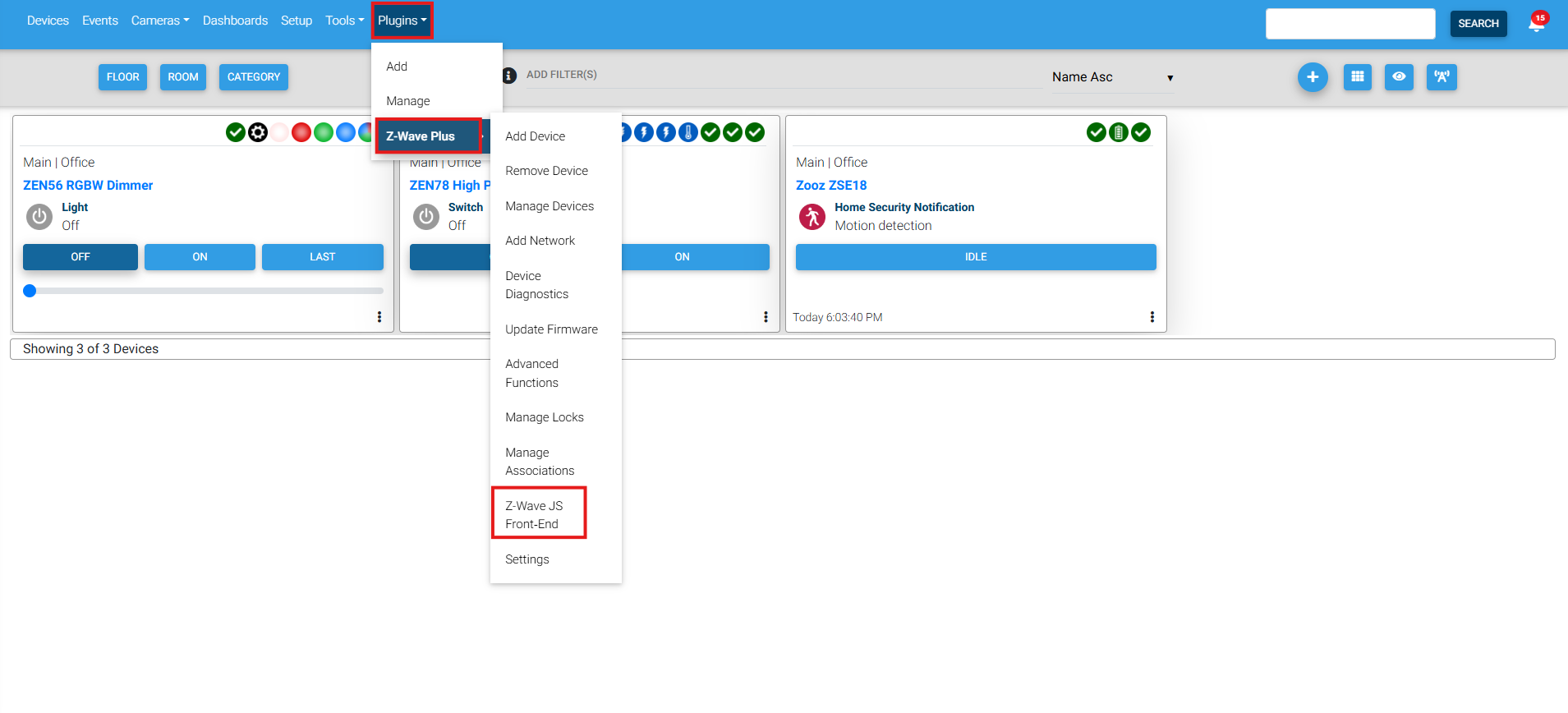 1. Click Plugins > Z-Wave Plus > Z-Wave JS Front-End.