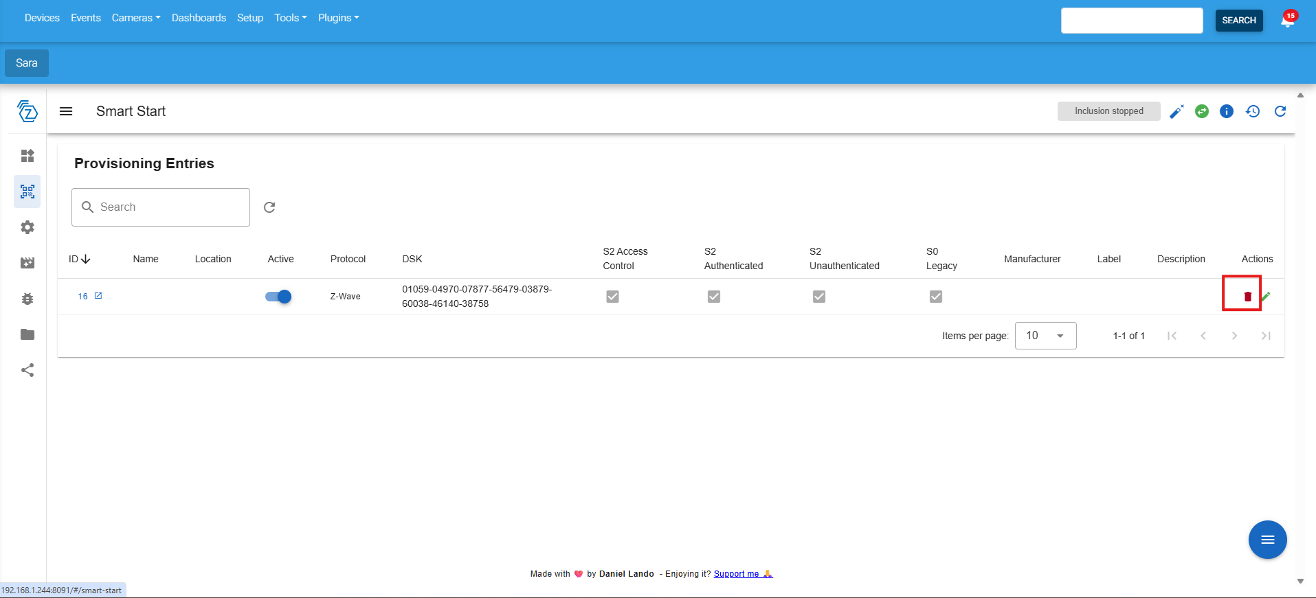 3. Locate your device via the DSK number and click the trash icon to remove it from the provisioning list: