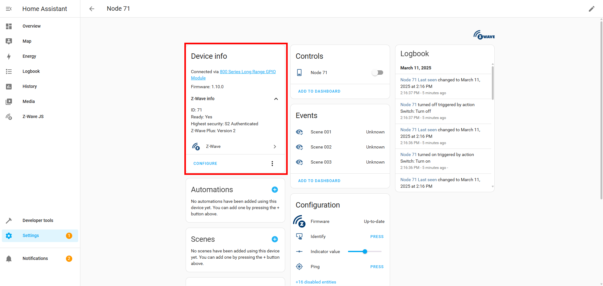 The Z-Wave JS UI integration of Home Assistant now supports Z-Wave Long Range (ZWLR) and with the latest app update (minimum 2025.5), QR code scanning for SmartStart is now supported. You will need to ensure you are using a Z-Wave stick that supports ZWLR along with a ZWLR supporting version of the ZEN71 (minimum hardware 3.0 / firmware 3.10).