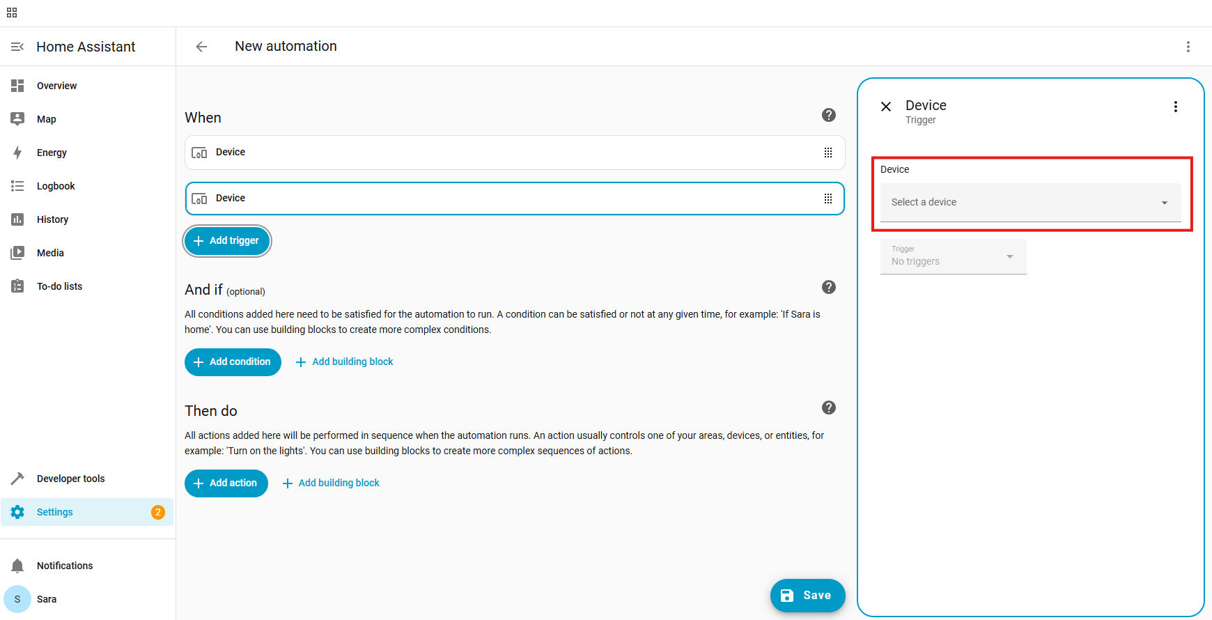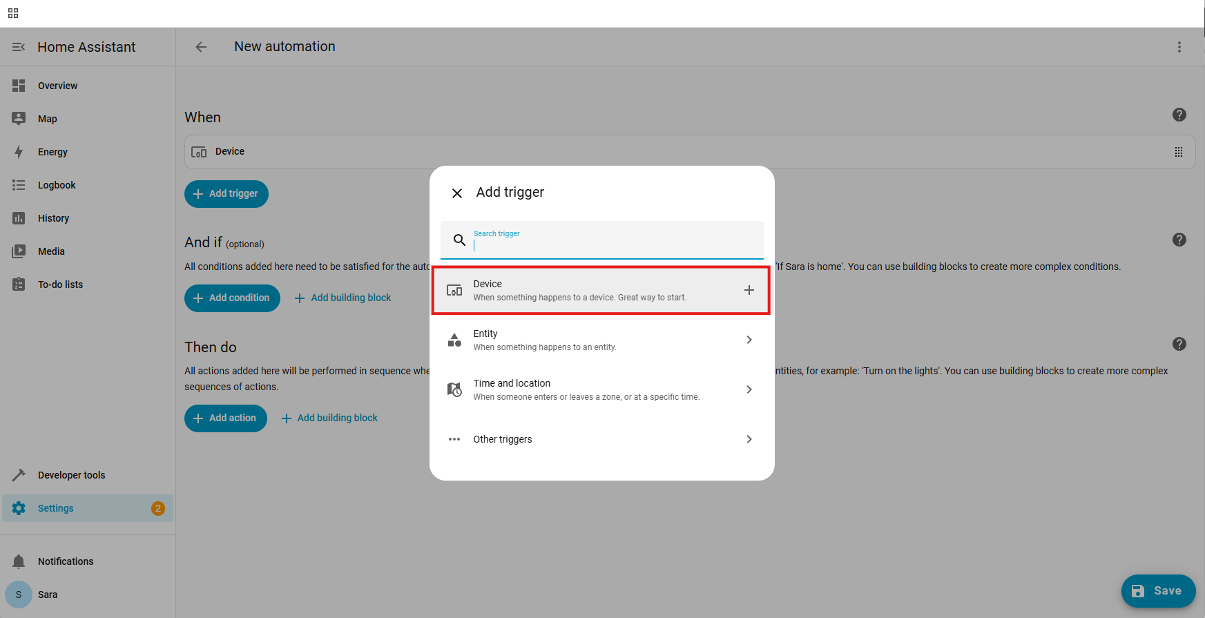 5. In our example, we will be using a device as a trigger, so we are selecting Device: