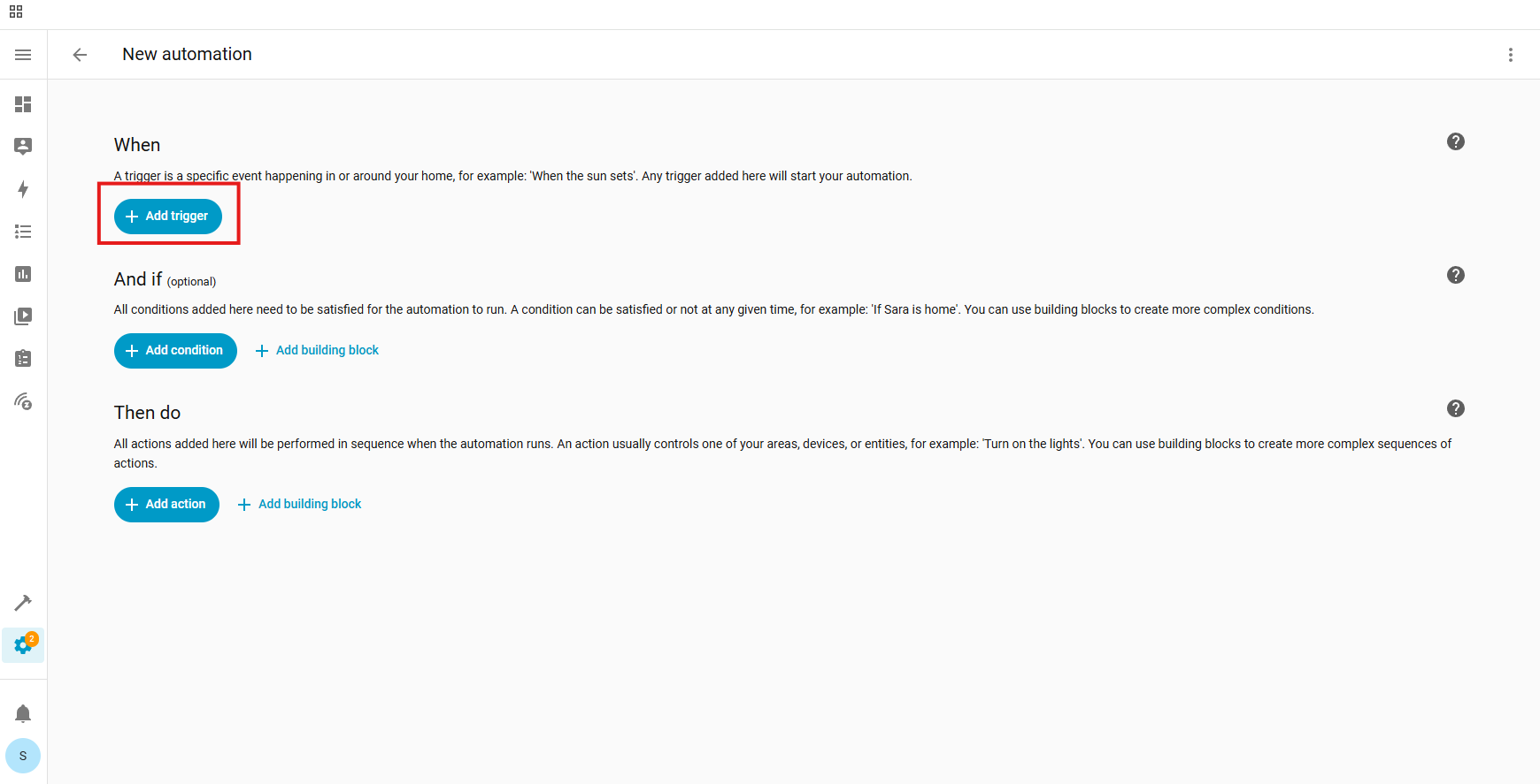 4. Click on +Add trigger. This is the event that you want to use that will trigger the siren to alert: