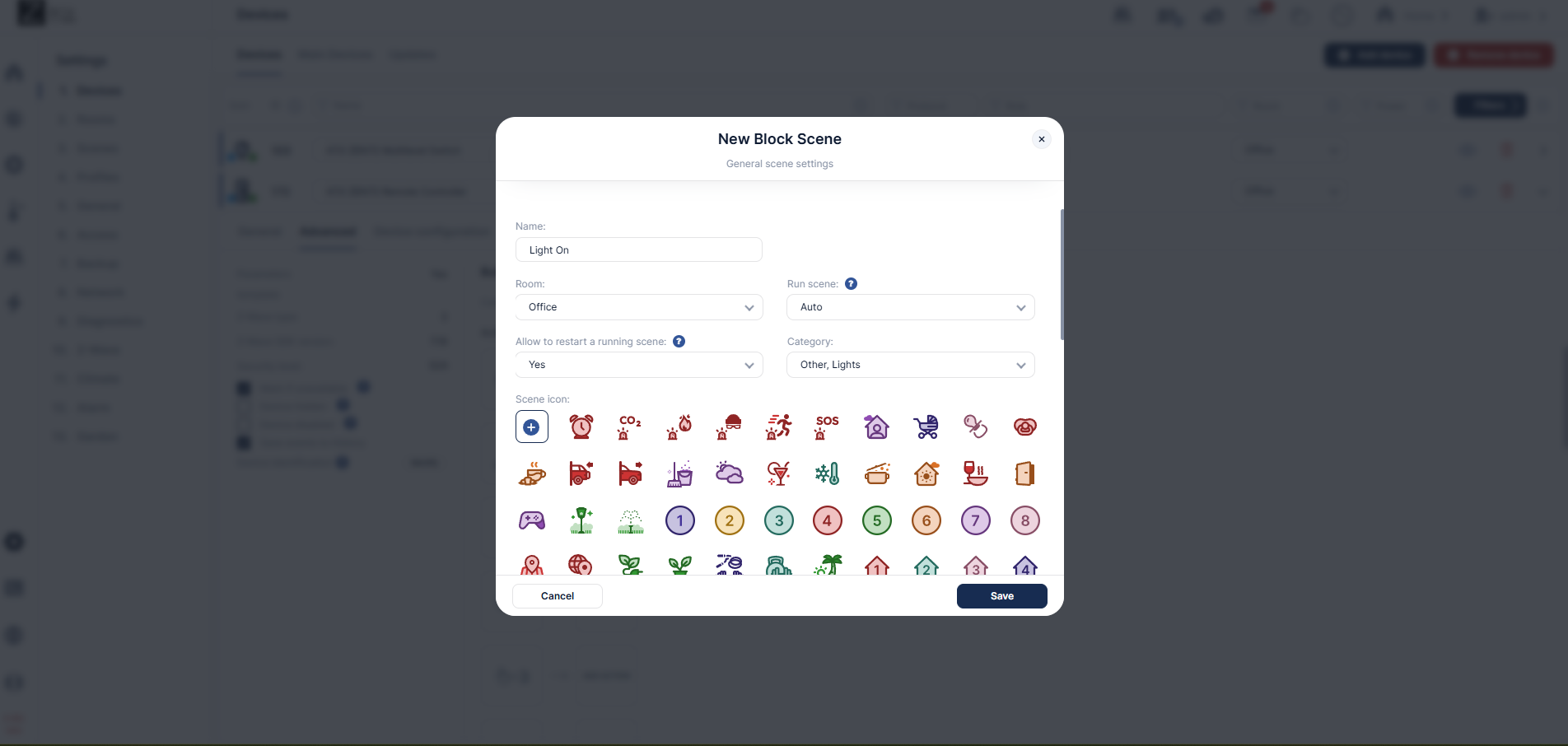 5. The block scene creator will pop up. Name your scene, select the room, etc. and click Save when done.