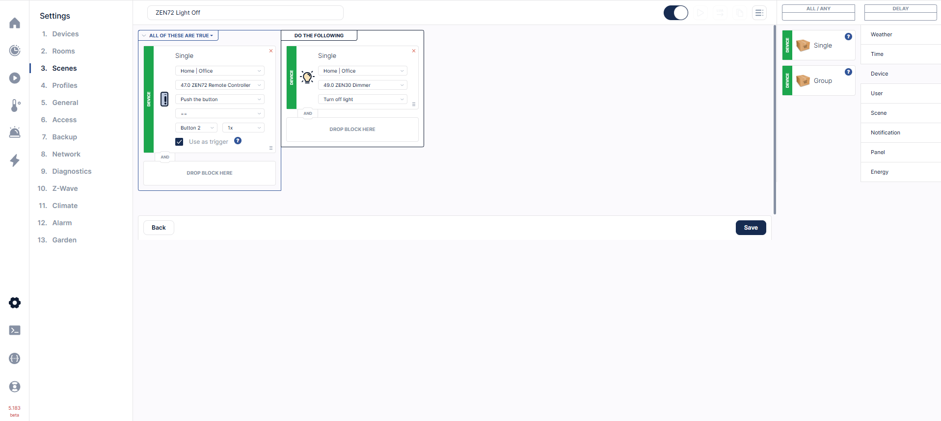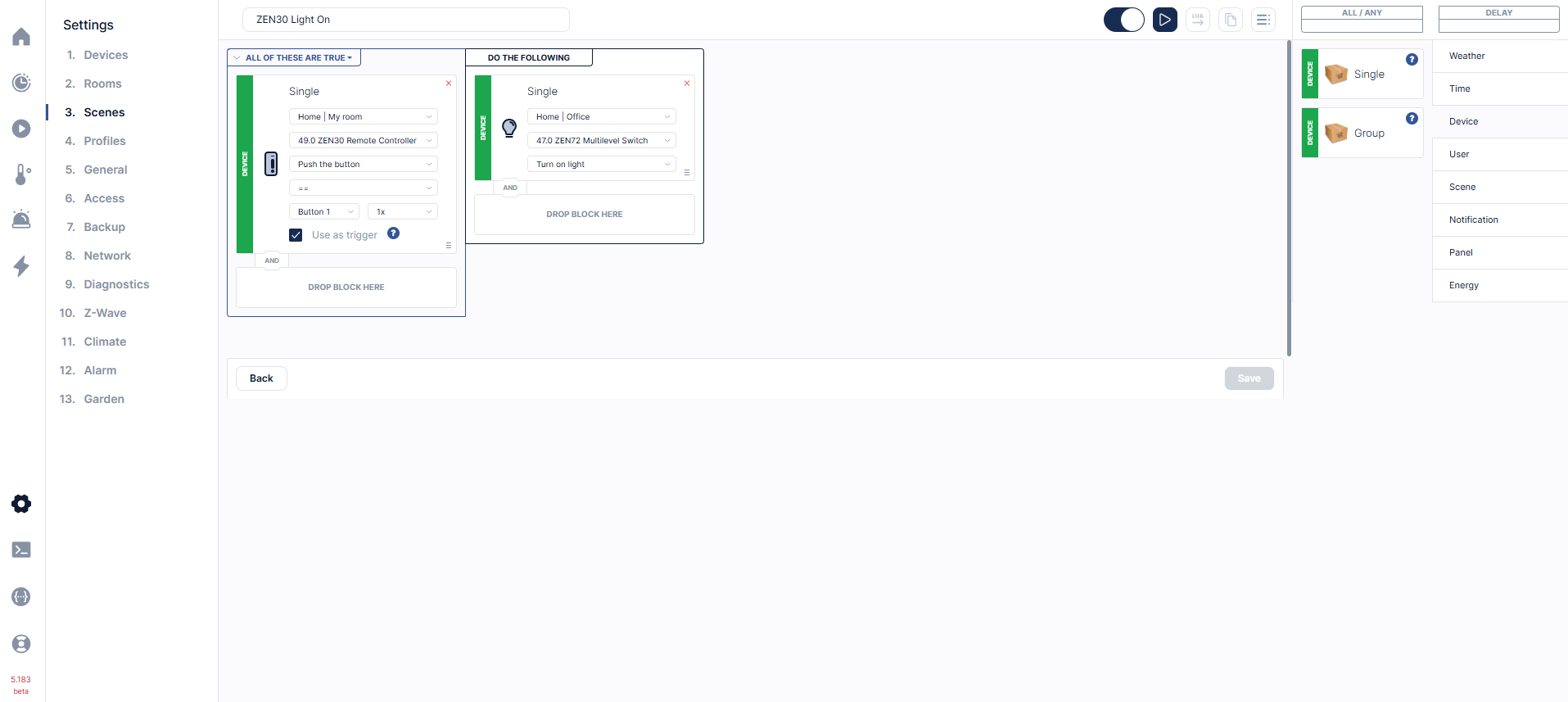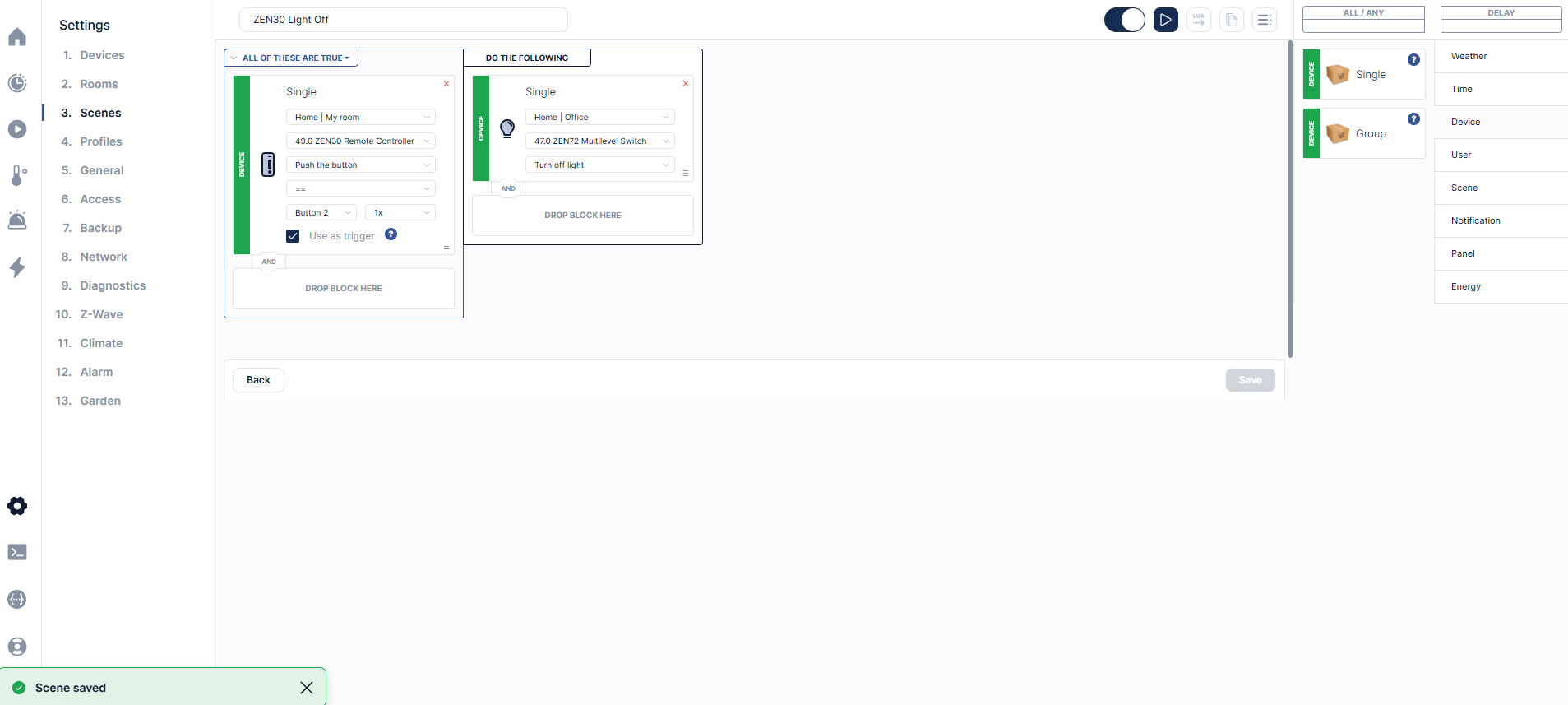 9. Go back to your devices and create the same turn off scene using the ZEN30 remote control device: