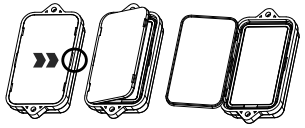 Insert the sensor into the waterproof case, by opening it on the back side as shown below: