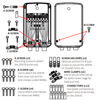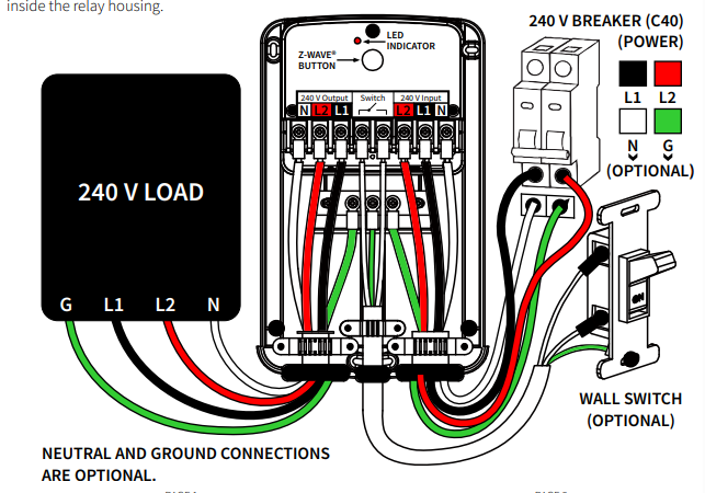 10. Restore power to the circuit and test the device. The LED indicator on the ZEN78 will pulse red when power is restored. The easiest way to test the device is to click the Z-Wave® button on the ZEN78 - the connected load will change its status (turn on or off) when the Z-Wave® button is clicked. Troubleshooting: If the device doesn’t power on, please turn off the breaker and make sure there are no loose connections. Double check you followed the correct diagram for your installation.