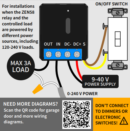 DIAGRAMMA DI CABLAGGIO ZEN58 CON SORGENTI DI ALIMENTAZIONE SEPARATE