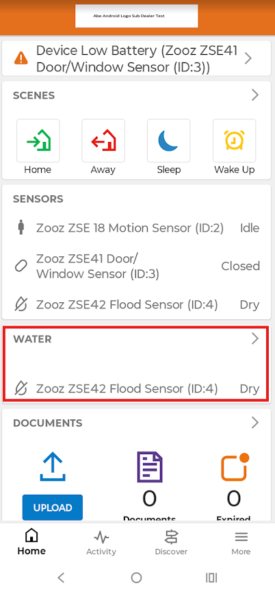 The ZSE18 Motion Sensor can be added to compatible Alarm.com systems* and will function as a water leak detection device. Once included, the sensor reports Activated and Idle events to the system, allowing it to generate notifications and trigger automations or security rules.