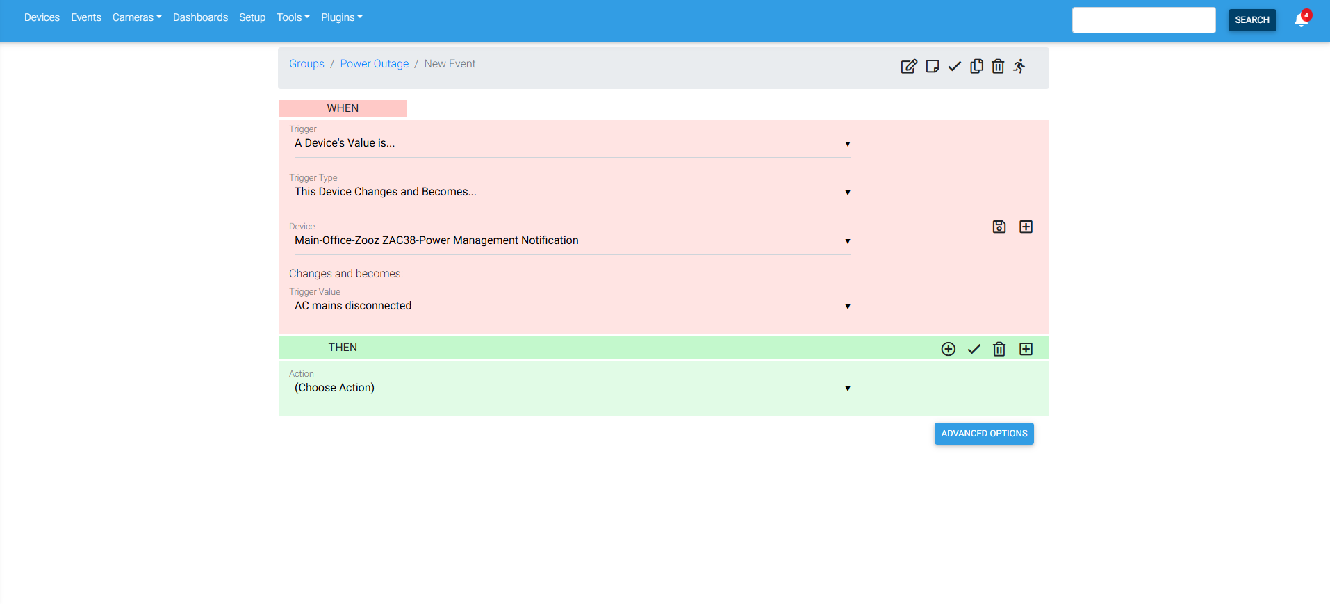 In this knowledge base example, we will walk through how to use the power outage event to send a notification to the user. However, the same reported event can be used for any type of automation you want to create. This includes sending alerts, triggering scenes, activating other devices, or combining it with additional conditions in your automation system.